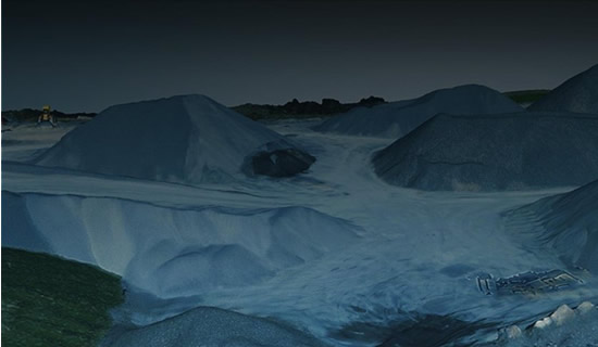 堆体测量的应用范围非常广泛,矿山、火电厂,建筑工程施工过程中的土堆沙堆计量,港口码头的散装货物估算,还有粮仓里的粮堆估算,这些都离不开堆体测量技术。目前的堆体测量,主要依靠全站仪、盘煤仪、GPS等测量仪器对堆体进行测量,相较于更早之前的完全依赖人工使用皮尺丈量,这些测量手段已经有了长足的进步。但是,如今有着更为高效、高精度的测量方法:使用无人机测绘并建模。无人机可以预设航线,在作业区域上空自动作业采集数据,采集完数据后可导入启飞应用自主开发的GIS系统,一键生成点云及三维模型数据,并据此进行空间距离、体积的测量,或者进行斜面等不规则堆体面积的模拟测量,为工程建设规划和生产作业等提供精确数值参考。