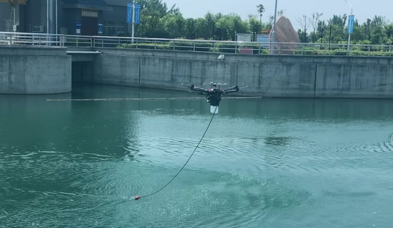 传统的水体监测,如果取水样本在离河流、湖泊岸边较远的位置,通常需要乘坐小型船舶到达取水位置,效率低、风险大、成本高。无人机通过搭载启飞应用开发的无人机取水模块,结合地面站系统可以在多个指定 GPS 坐标水域进行水体取样,安全高效。从而实现在人力不便接近的地点,高效安全的取水作业。