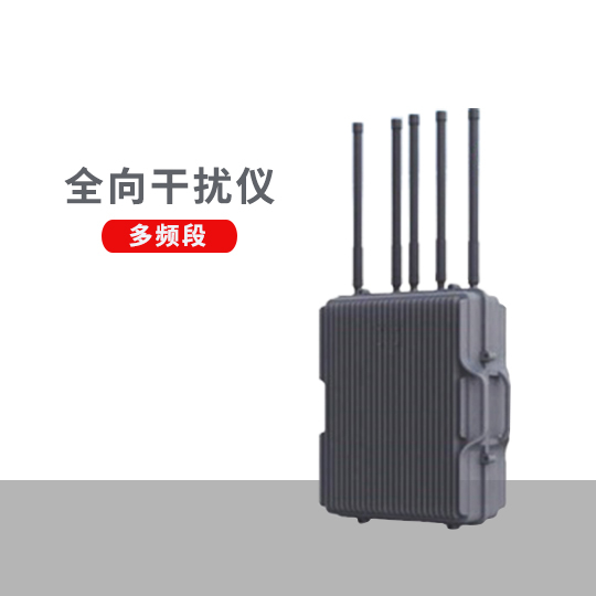 F-03D型多频段全向干扰仪,由天线阵列、全向干扰设备、信号处理设备组成,系统采用窄带宽小功率精准打击和大功率全向干扰相结合的方式,对黑飞无人机??亓绰?、图传链路和导航信号进行干扰阻断,迫使其迫降或驱离