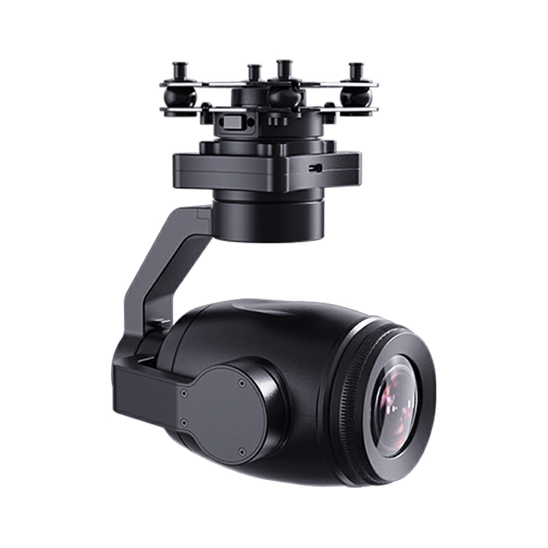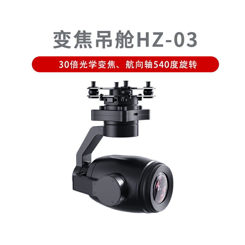 HZ-03变焦吊舱搭载112.7英寸索尼影像传感器,拥有感光能力惊人的超大像素CMOS,以及强悍的4K视频录制与拍照性能,支持180倍混合变焦,光学变焦最高可达30倍。HZ-03变焦吊舱航向轴支持540度旋转,挂载在垂起固定翼无人机上,飞行状态下可以实现360度无死角的视野。支持选配减震快拆结构,承重更大更稳定。